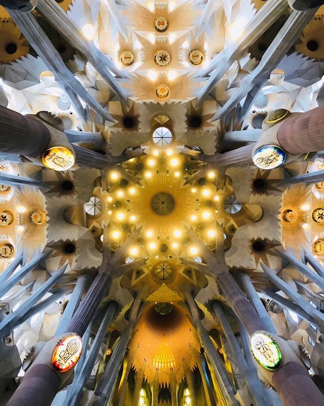 除了令人震撼的高度,富有設(shè)計(jì)感的幾何圖案細(xì)節(jié),圣家堂內(nèi)部的光影效果,更是增強(qiáng)了圣家族大教堂的感染力與莊嚴(yán)感。