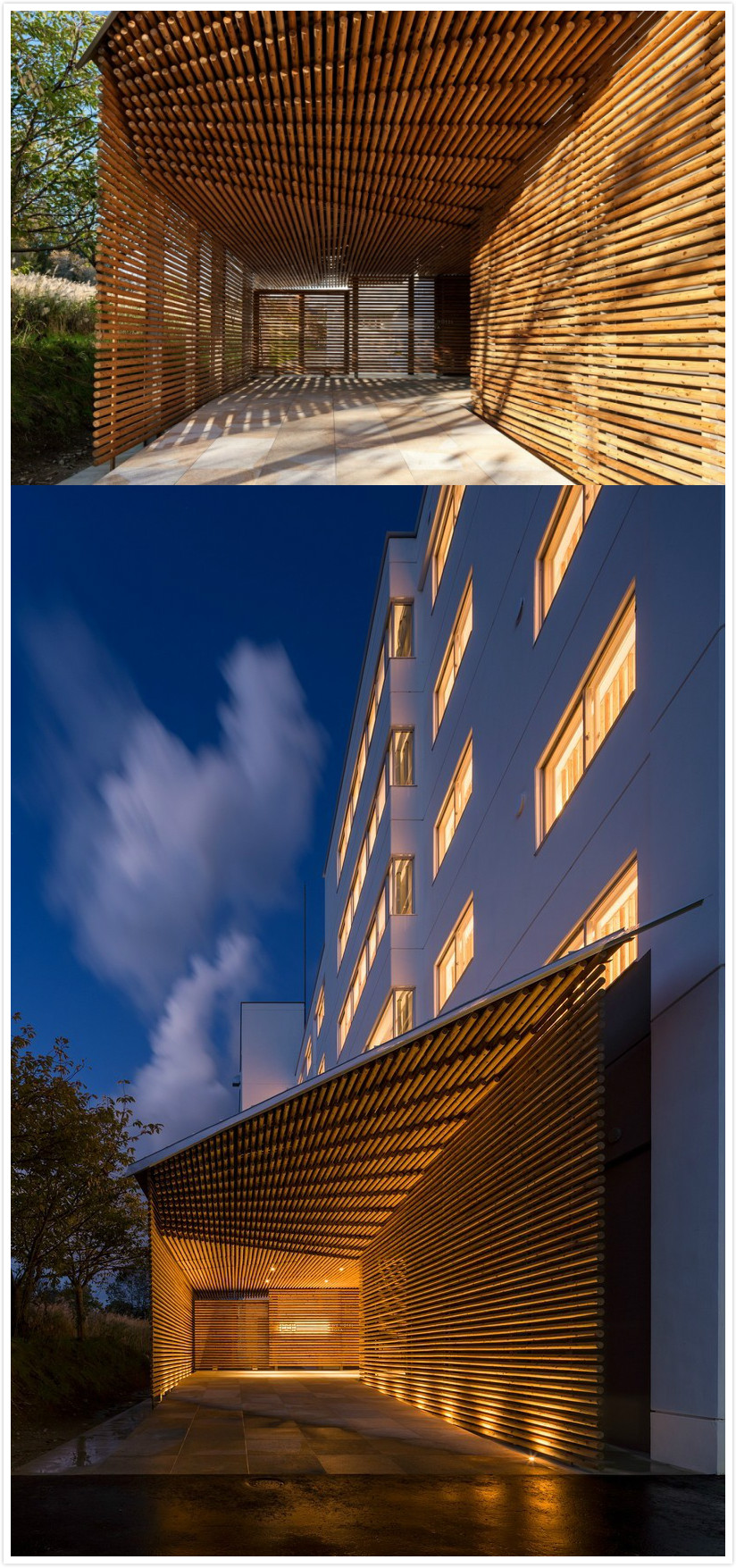 在外層的木板材質隨外界的變化而在外立面上產生多樣性,其自然形成的痕跡非常符合隈研吾的設計美學。