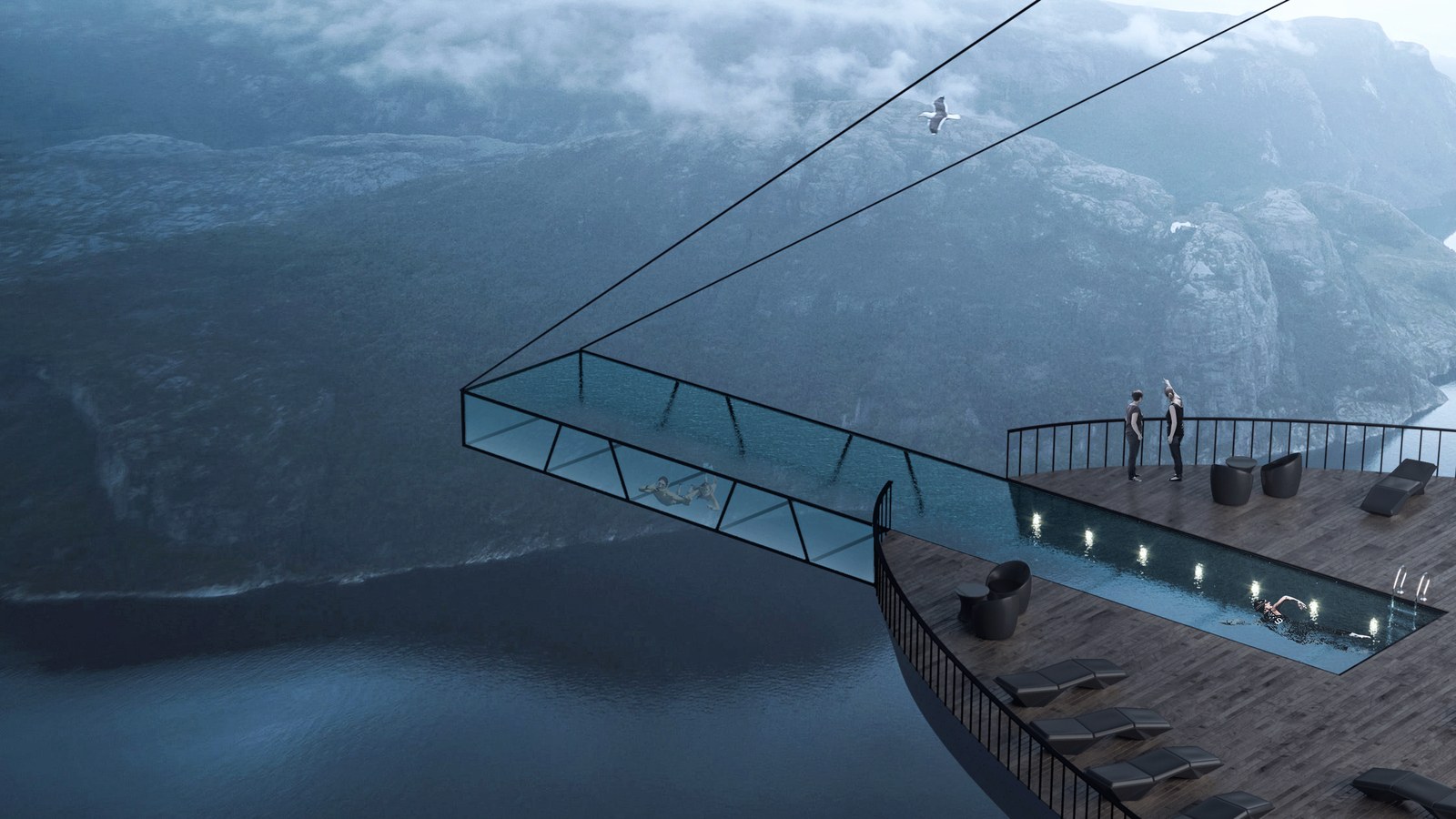 你試過在懸崖上方,離地1982英尺的玻璃池里游泳嗎?該酒店由土耳其建筑設計師 Hayri Atak所設計,將建在挪威里弗伊爾著名的Preikestolen懸崖邊,享有世界上最壯觀的景觀之一。