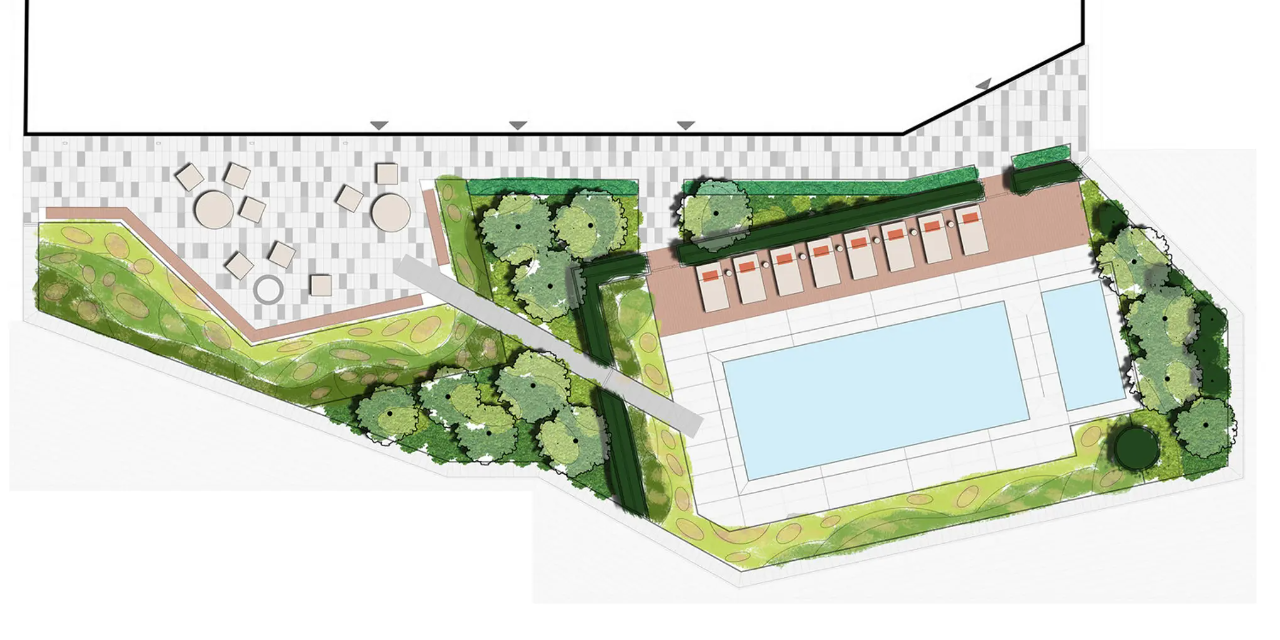 16樓的公共露臺集合游泳池、草坪露臺與休息區,植被覆蓋率達60%以上,形成城市中的生態綠洲。露臺的植被選擇(如耐旱植物與本地物種)兼顧美觀與可持續性。