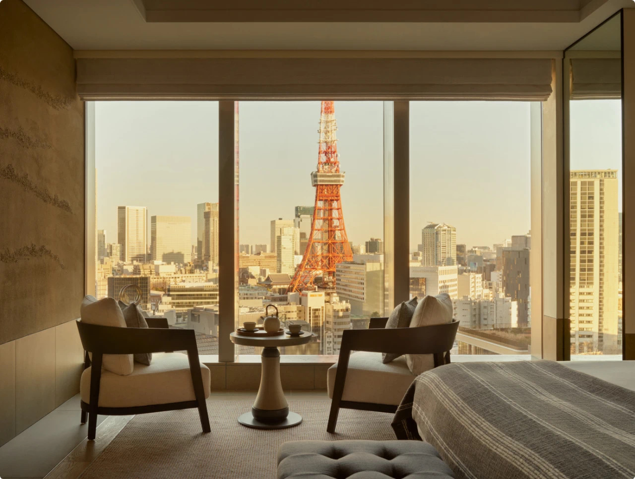 每間客房都配備了寬敞明亮的私人陽臺,讓您盡享東京城市天際線或環繞麻布臺之丘的綠色美景。