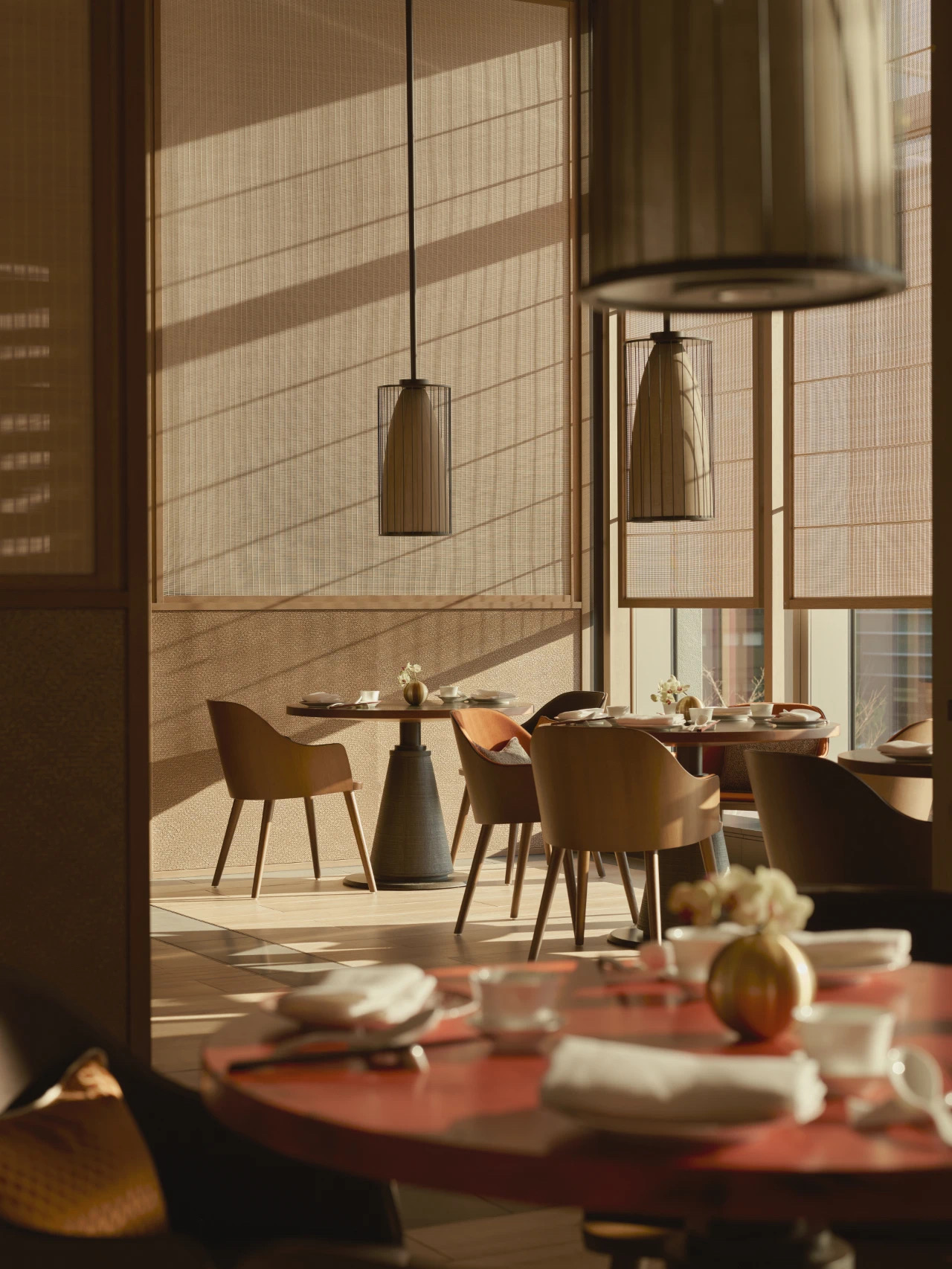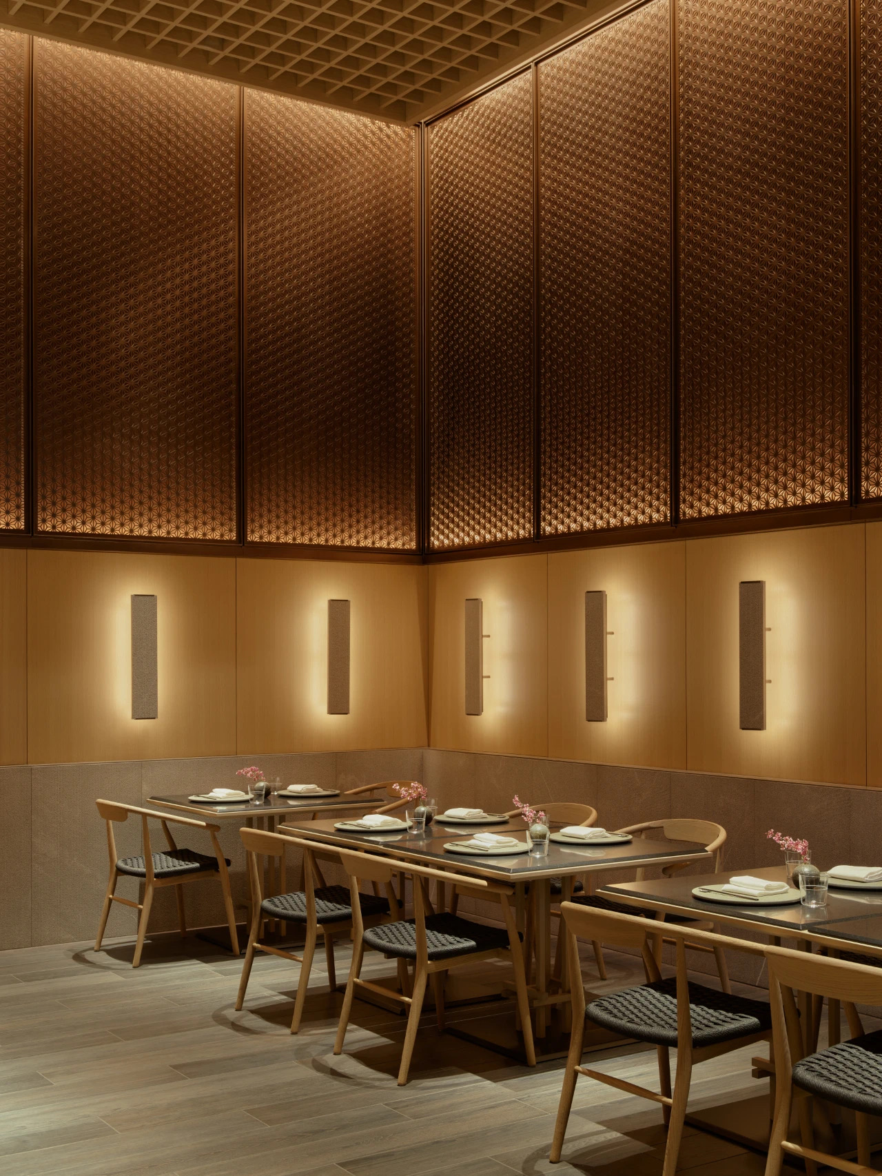 Janu Tokyo將高挑開闊的空間與溫馨柔和的室內光影效果相結合,營造出一種既摩登又親近自然的氛圍。