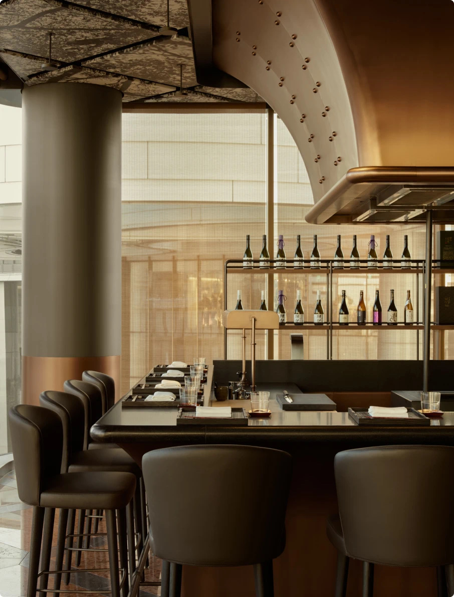 在Janu Tokyo,餐廳設計同樣是一大亮點。酒店設有八個風格迥異的用餐場所,提供從純正意大利菜到廣式點心等多種國際美食,滿足客人不同的味蕾同時,也能提供多元化的場景體驗。