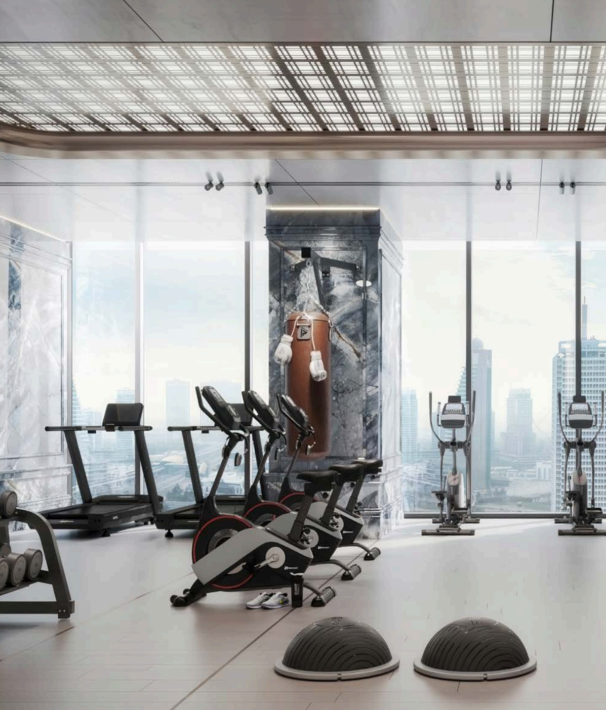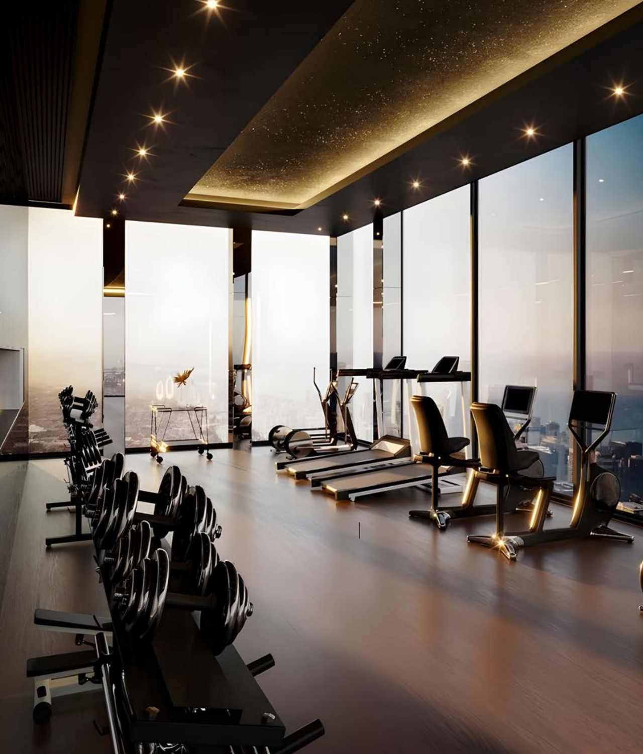 設計了每20層設游泳池+水療中心,健身房配全景落地窗,還有電影院+夜總會+高空超市,娛樂購物一步到位。