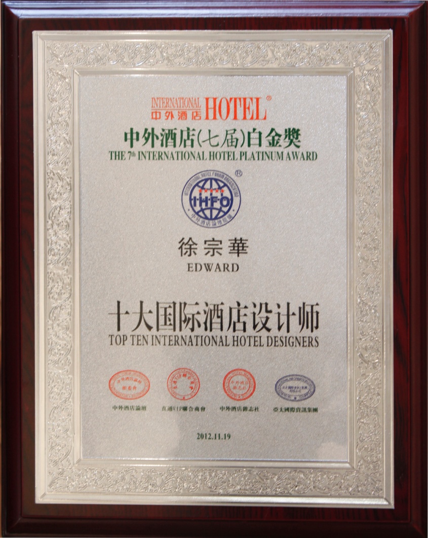 隨著2012年 11月19日榜單的發布,又一批優秀的設計師脫穎而出,BJD酒店設計機構徐宗華設計師榮獲“十大國際酒店設計師”,徐宗華設計師以精益求精自強不息的企業精神創造出不平凡的作品。