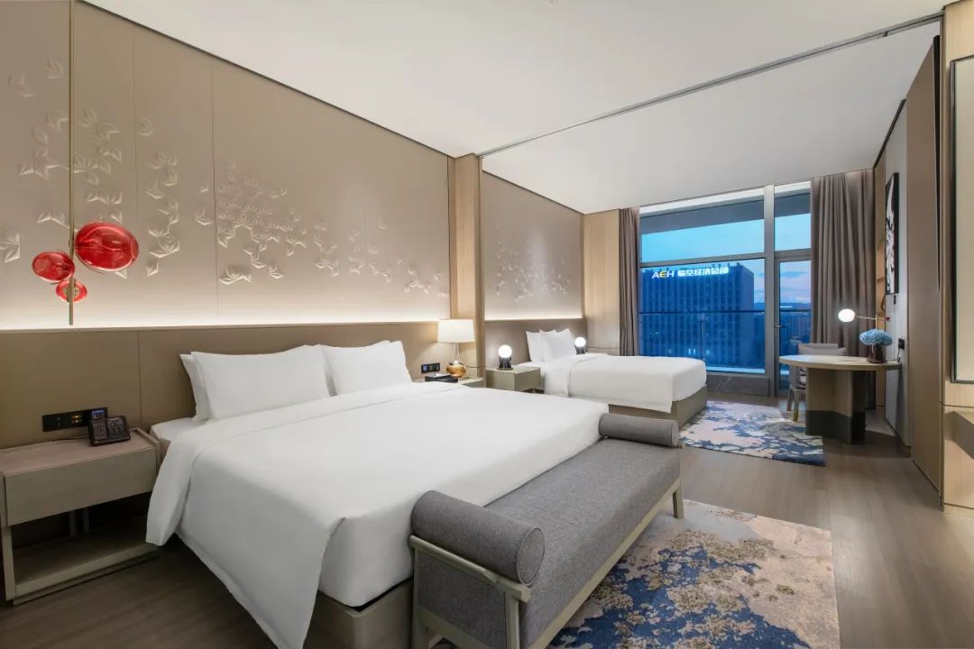 新中式客房的設計上則更注重傳統文化的表達與傳承。無論是大床房、雙床房還是專門為家庭設計的母子房,都以新中式風格為主線,同時融入了現代化的功能性設計。