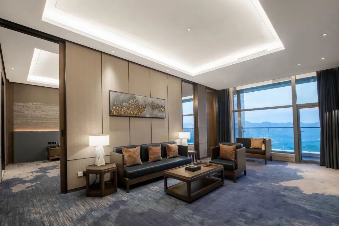 套房內的會客廳寬敞明亮,是您品茗閑談、接待賓客的理想之所。