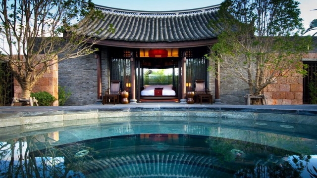麗江悅榕莊的特色在于其建筑風格、所處地理位置既沿襲了悅榕營造優雅浪漫的度假風格,但整體建筑風格又非常地方化,建造伊始就按照麗江城市規劃要求把麗江古城的建筑風格融會貫通其中,而內部則是五星級的現代化酒店設施。