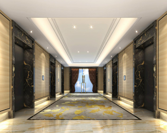 電梯要從空間位置來進(jìn)行設(shè)計,首先要考慮客房的空間位置,如果建在走廊中間,就能讓客人無論在哪個方向都可以避免走很多路。據(jù)國外的統(tǒng)計數(shù)據(jù)顯示,五星級酒店的電梯應(yīng)符合0.7%的規(guī)律,即每100間客房應(yīng)該有0.7部電梯。但該研究并不代表一個絕對的數(shù)值,應(yīng)該視具體情況而定。一般在電梯的左右兩側(cè),間隔5組左右,電梯的寬度一般設(shè)計為米,可在電梯內(nèi)安裝長鏡,就能更貼心的為客人提供整理妝容的便利。電梯里的燈光應(yīng)該適當(dāng)增強。因為五星級酒店的大堂對外開放,所以對安保方面要更加重視,要給客人房卡方便其出入相關(guān)樓層,安保人員應(yīng)該嚴(yán)格執(zhí)行限制性措施。但是因為房卡的數(shù)量有限,因此就會造成客人的親屬或朋友不能拜訪。因此在這一方面還需要改善。